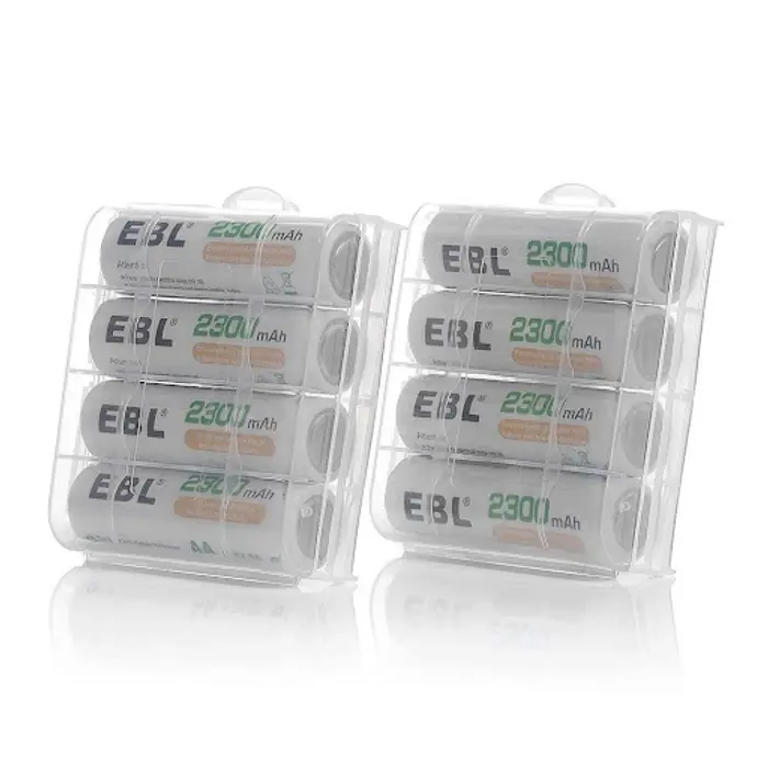 EBL AA 2300mAh rechargeable batteries are built using ProCyco technology, which enhances their recharge efficiency and extends battery life. These Nickel-Metal Hydride (NiMH) cells deliver a stable 1.2V output and are ideal for high-drain devices such as digital cameras, flashlights, gaming controllers, toys, and remote controls.
