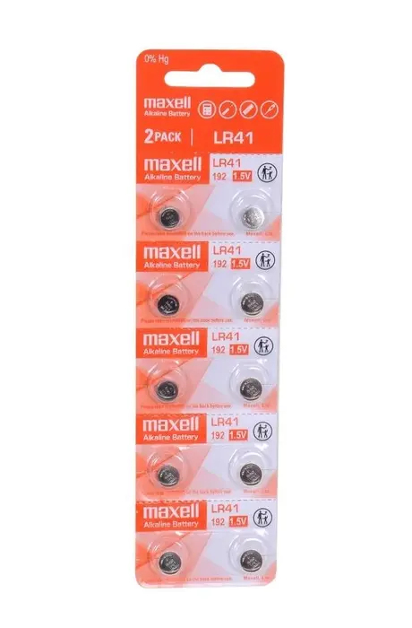 The Maxell LR41 and equivalent models (SR41W, SR736, SB-B1, 280-13, K, V392, D392, 247D, S736E, AG3, AG-3, GP392, LR736, 392, 192, L736, G3, V3GA, LR41, SG3, ASG3, G3A) are reliable 1.5V alkaline button cell batteries designed for small electronic devices. They provide stable voltage, long-lasting power, and consistent performance for watches, calculators, toys, thermometers, glucometers, and other low-drain electronics. Ideal for both personal and professional applications.