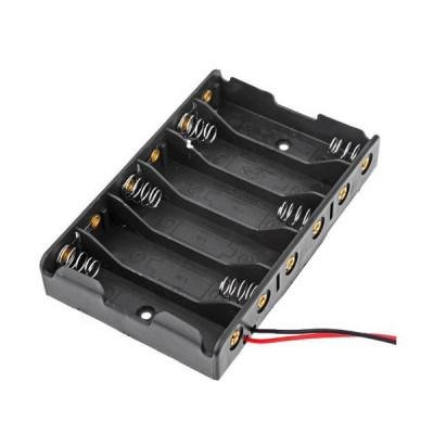 The 6xAA Battery Holder - Black is designed to hold six AA batteries in series, providing a total output of 9V. Made from durable ABS plastic with strong metal spring contacts, it ensures a secure electrical connection and easy battery replacement. Ideal for DIY electronics, Arduino projects, toys, and portable devices.