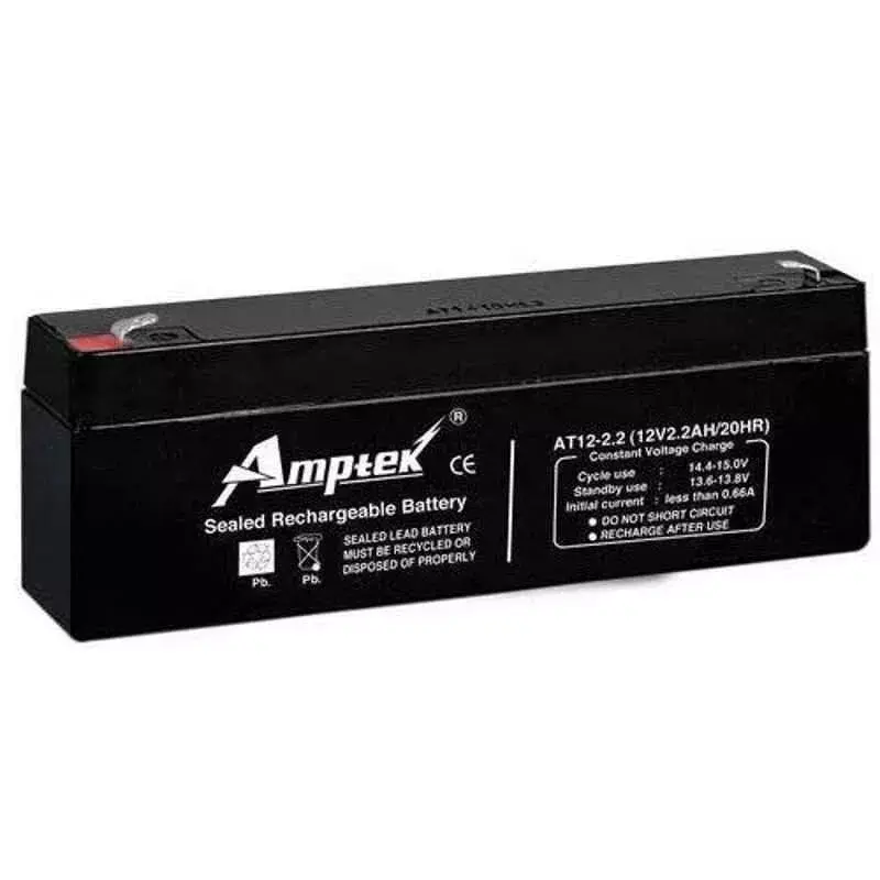 The Amptek AT12-2.2 is a 12V 2.2Ah black sealed maintenance-free (SMF) industrial battery, designed for reliable and consistent power backup. It features a robust sealed lead-acid (SLA) design, ensuring leak-proof and maintenance-free operation. Ideal for UPS systems, emergency lighting, medical devices, alarms, and other critical equipment. Compact, durable, and efficient, it delivers dependable performance across various industrial and commercial applications.