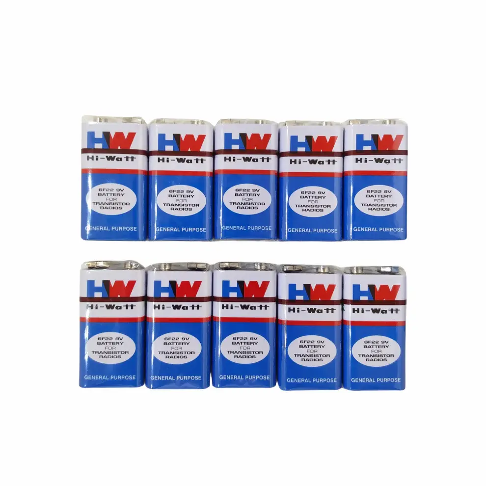 The Hi-Watt 6F22 9V Battery is a general-purpose zinc-carbon battery designed for low-drain electronic devices such as toys, transistor radios, remote controls, multimeters, and clocks. Affordable and dependable for everyday use, these batteries offer standard 9V output and are perfect for bulk use in homes, schools, or workshops. The pack of 10 provides excellent value for stocking up on essential power sources.